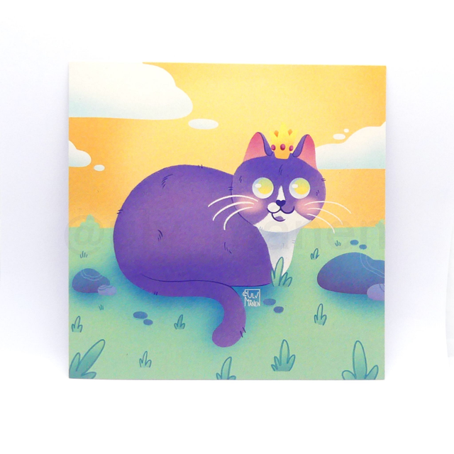 Print illustration chat violet prince - papier épais - format carré - 14cm x 14cm - photos non contractuelles